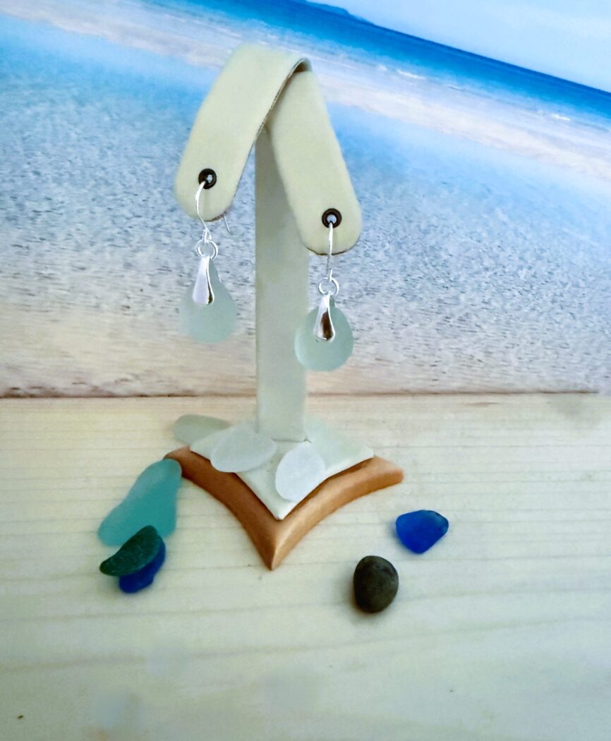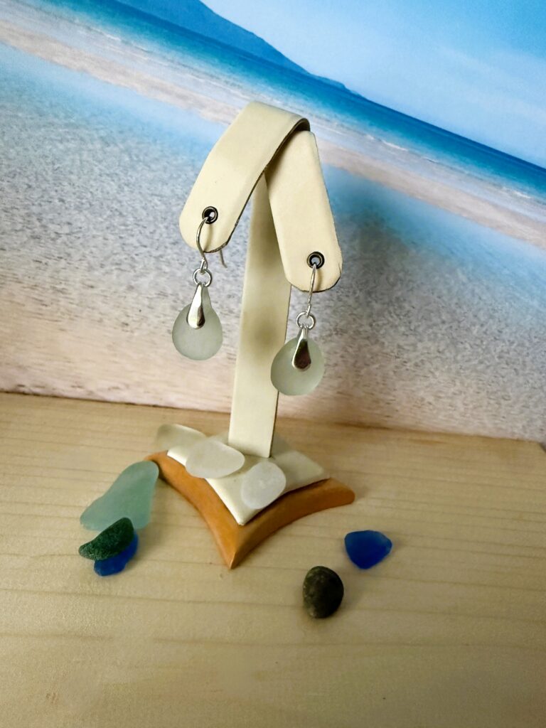 A stunning  pair of Hebridean Sea Glass Earrings set with sterling silver